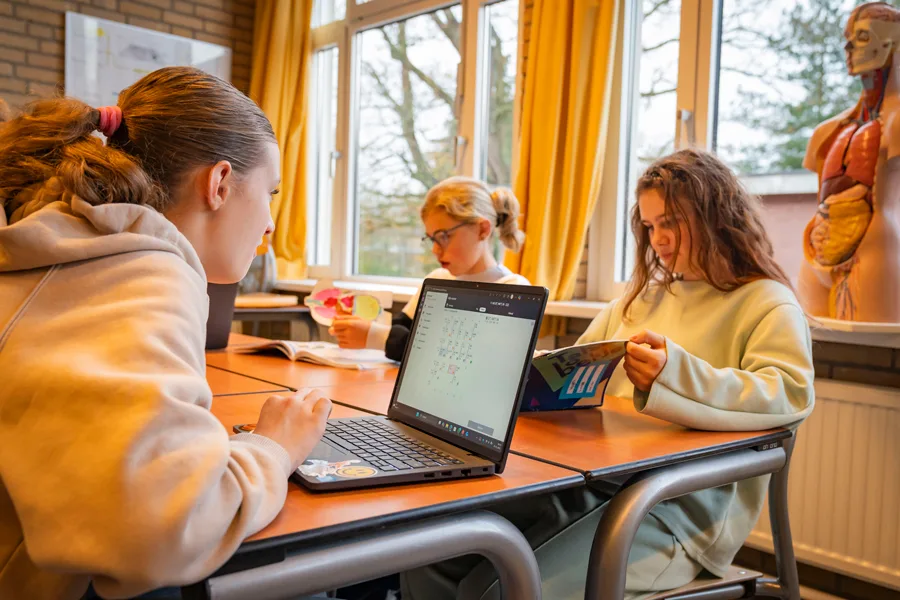 We werken zonder traditioneel huiswerk. Van maandag tot en met donderdag is er na het laatste lesuur een begeleidingsuur waarin je aan je taken kunt werken. Zo creëren we rust, overzicht en ruimte om te leren op school. Uiteraard moeten alle taken aan het eind van een periode wel zijn afgetekend.