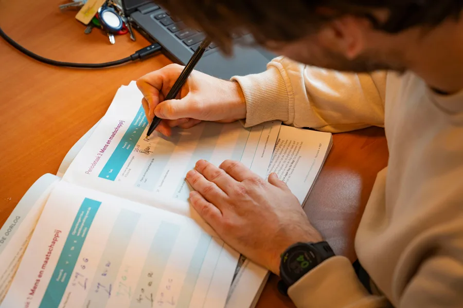 Je werkt met taken die je binnen een periode afrondt, in een tempo en volgorde die grotendeels bij jou passen. Elk semester krijg je een takenboekje waarin staat wat je per vak leert. Daarnaast is er dagelijks keuzewerktijd, waarin je zelf bepaalt waar je aan werkt. Samen met je mentor en docenten leer je plannen, reflecteren en steeds zelfstandiger werken.